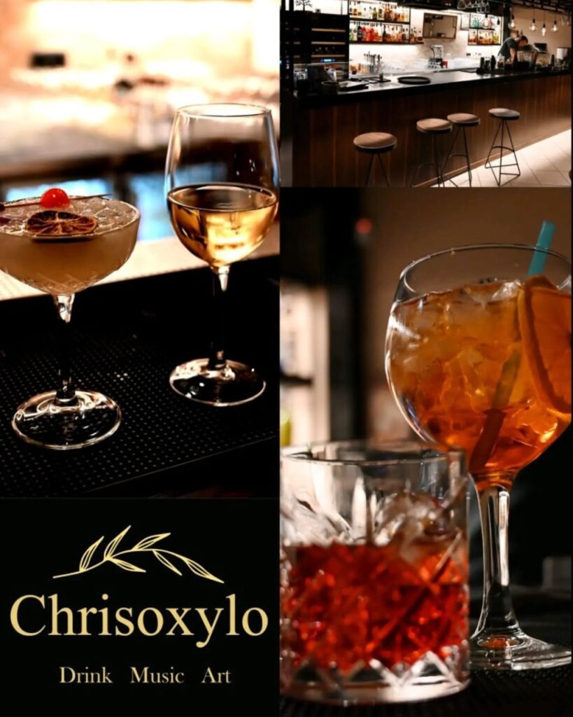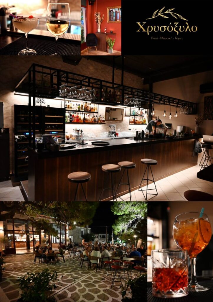 Στο Χρυσόξυλο θα βρείτε πολύχρωμα κοκτέιλς, επιλεγμένες ετικέτες σε κρασιά και μπύρες, αλλά και έναν χώρο όπου μπορείτε να χαλαρώσετε, να απολαύσετε την παρέα σας και να ζήσετε μοναδικές στιγμές. Στο χώρο θα λειτουργεί έκθεση ζωγραφικής, ανοιχτή βιβλιοθήκη με βιβλία τέχνης και ζωντανά λάιβ με πολλές εκπλήξεις.